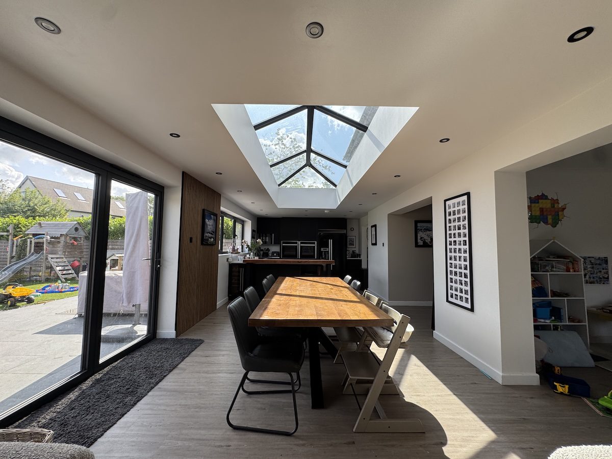 With a growing family, the homeowners wanted to create a spacious, connected area where everyone could cook, dine, and relax together. Their old kitchen layout felt confined and disconnected from the garden. The brief was to design and build a modern orangery Kitchen extension that would become the true heart of the home — combining a kitchen, dining room, and snug all within one light-filled space.